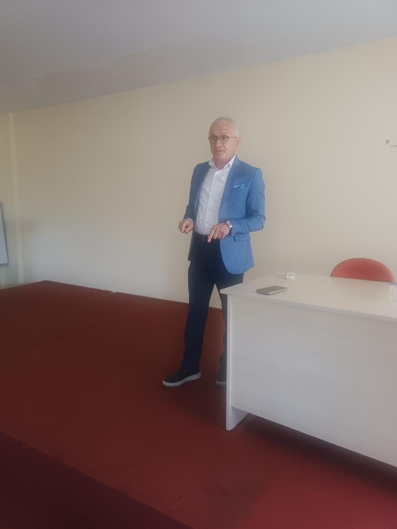Turizm İşletmeciliği Bölümü tarafından 16.10.2025 tarihinde, öğrencilerin kariyerlerini planlaması ve geleceğe yönelik olarak turizm sektöründeki çalışma koşullarını algılayabilmeleri için Ramada by Wyndham Giresun Genel Müdürü “Dursun AYDIN” beyefendi konuk olarak katılmıştır. Öğrencilerimizin genel otel işletmeleri, işe alım şartları ve istihdam edilme özellikleri konusunda bilgilerin sunulduğu etkinlikte, Sayın Dursun AYDIN, öğrencilerle soru-cevap şeklinde samimi bir ortamda merak ettikleri sorulara cevaplar vermiştir. Kendisine katkılarından dolayı Turizm İşletmeciliği Bölüm Öğretim Üyeleri olarak teşekkürlerimizi bir borç biliriz.